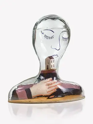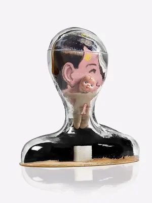 Я использовал эту деформацию в своих целях. Я не такой умелец, которые делают кораблики в бутылках, или распятия, которых очень много в Праге. Было безумно трудно вложить содержимое в эти головы.